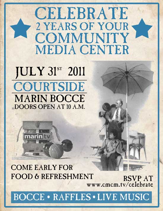 Join us on Sunday, July 31st at Marin Bocce for a day of activities and help CMCM get the ball rolling for our Fall Fund Drive! We'll have food and refreshments, music, raffles, member recognitions, CMCM swag and of course open Bocce play all day! If you're new to CMCM or Marin TV - come meet our staff along with the many local producers who help make it all possible and enjoy a fun, relaxing day!