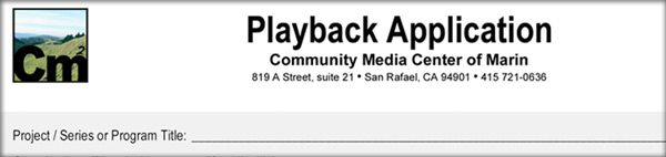 The playback application is exactly what you need if you are trying to air your show on Channel 26,27, or 30. When your ready and you have filled out the necessary information just come down to the CMCM located in downtown San Rafael and drop of your application.